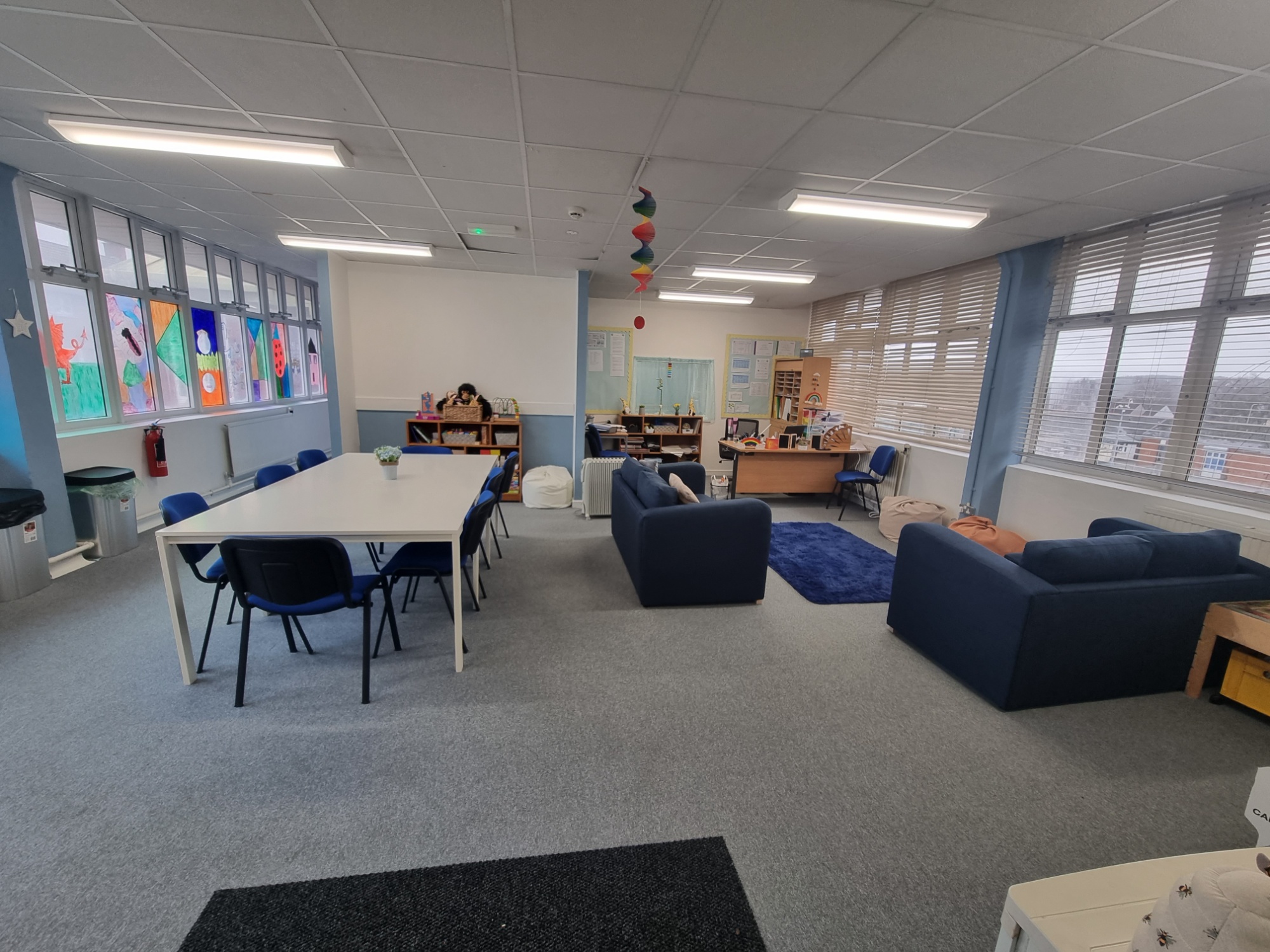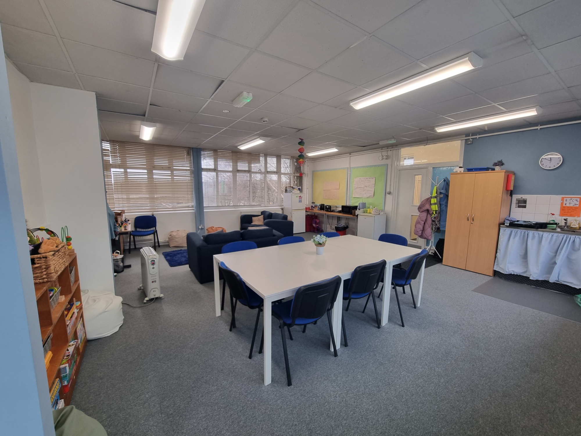 Our Family Room is multi-purpose and hosts coffee mornings, arts and crafts sessions, adult courses, parent and child courses, meetings and much more. The room was lovingly decorated by parent volunteers in 2023. We are currently expanding the space to include a more permanent 'Community Shop' and kitchen area. The kettle is always on, so pop in and join us for our next event!
