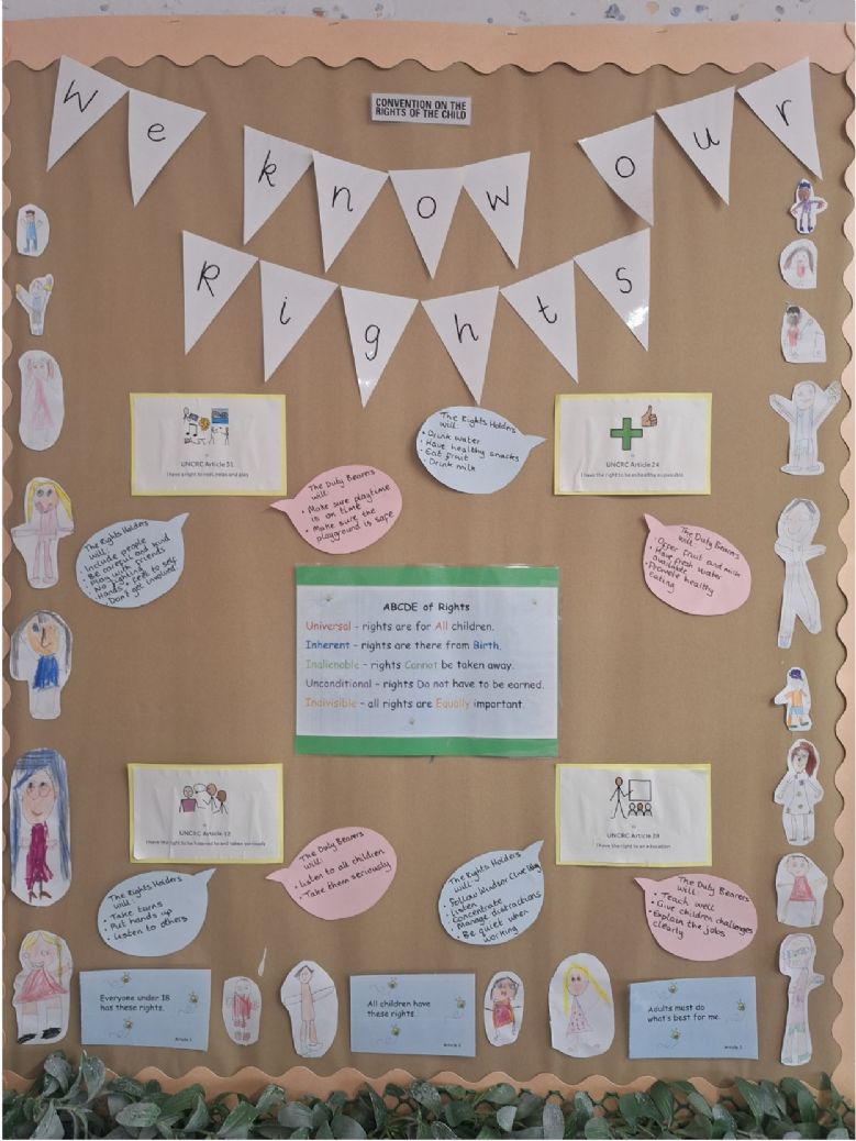 Teachers and classes have each created a Class Charter. The adults (duty bearers) and the children (rights holders) have together agreed what they will do to make sure their rights are being met and respected in school.